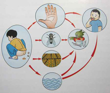 - Do môi trường sinh sống cũng như thức ăn của ruồi không được sạch sẽ nên hiện nay loài côn trùng nhỏ bé này đang là nguyên nhân truyền nhiễm của nhiều loại bệnh nguy hiểm như kiết lị, thương hàn, thổ tả, giun sán, nhiễm trùng mắt, mụn cóc, nấm phong, viêm gan, đau mắt hột, đậu mùa… Các virust, mầm bệnh sẽ tồn tại ở trong các chất thải và có thể bám dính vào chân ruồi trong quá trình kiếm ăn, sau đó ruồi tiếp xúc với thức ăn hoặc bề mặt da của con người và trực tiếp lây nhiễm nguồn bệnh.